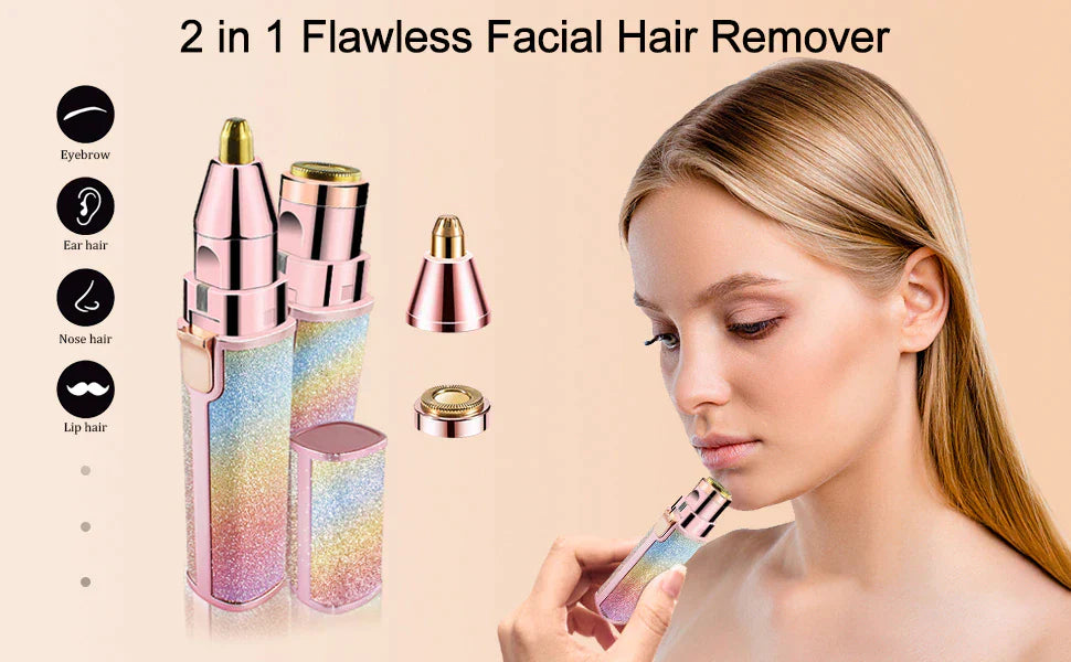 Flawless 2 in 1 Eye Brow And Facial Hair Remover Chargeable , Multi Attractive Color With USB Charging Cable And Cleaning Brush